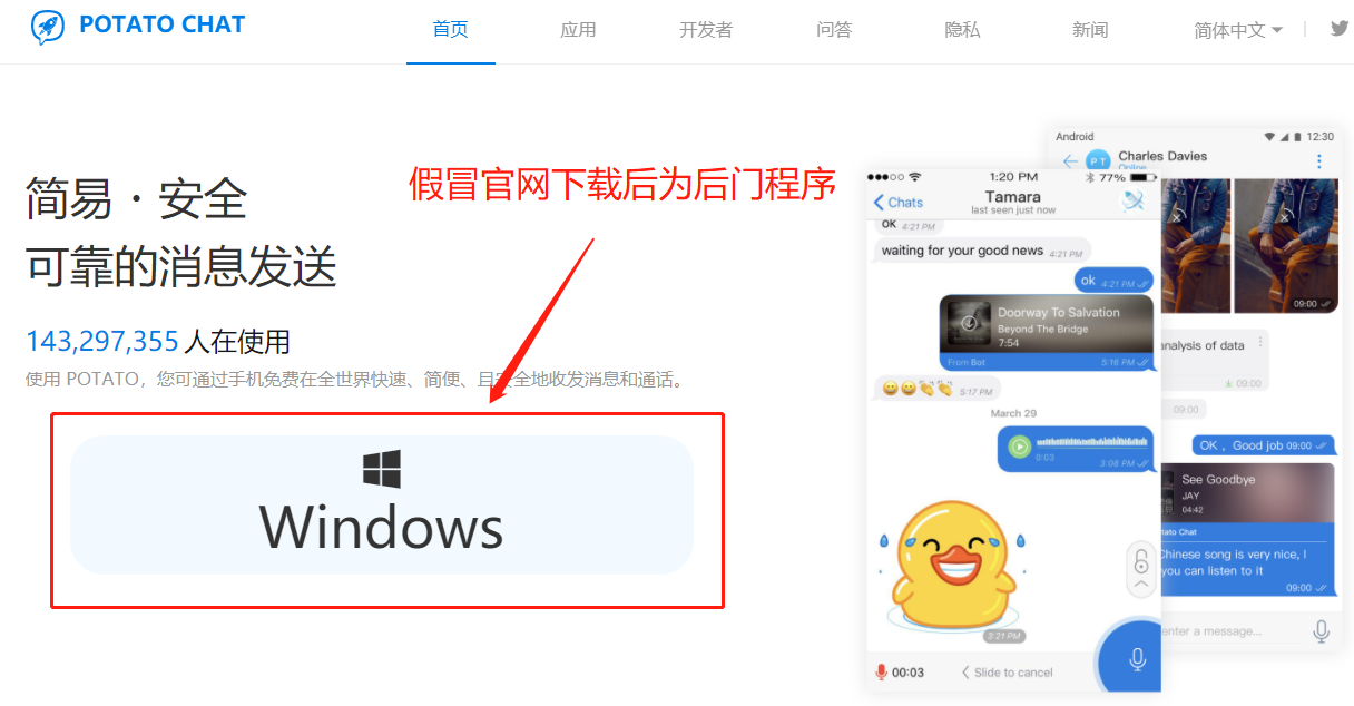 图:真(上)假(下)potato chat官网对比
