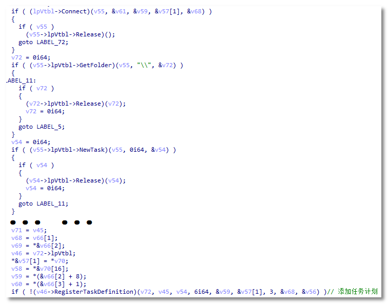 创建任务计划来进行持久化,相关代码,如下图所示: