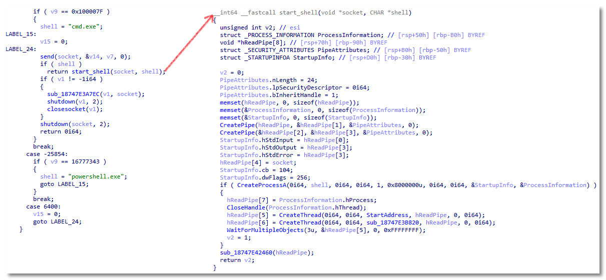 执行C&C服务器下发的任意的Shell命令,相关代码,如下图所示: