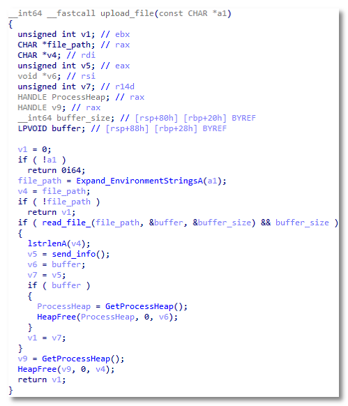 上传C&C服务器指定的文件,相关代码,如下图所示: