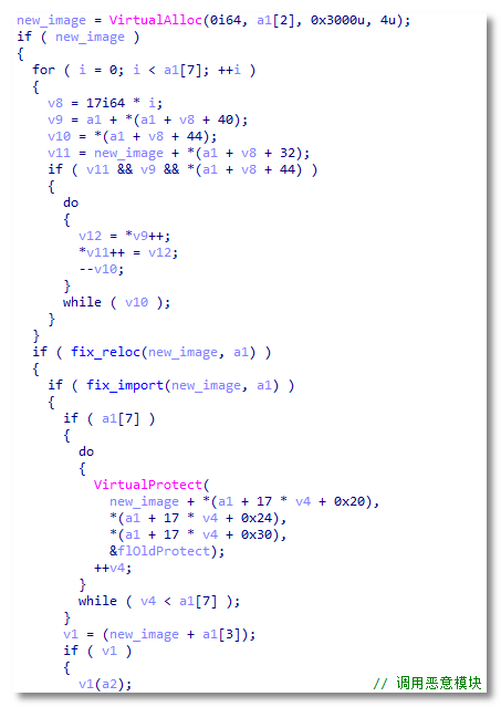 加载C&C服务器下发的恶意模块,相关代码,如下图所示: