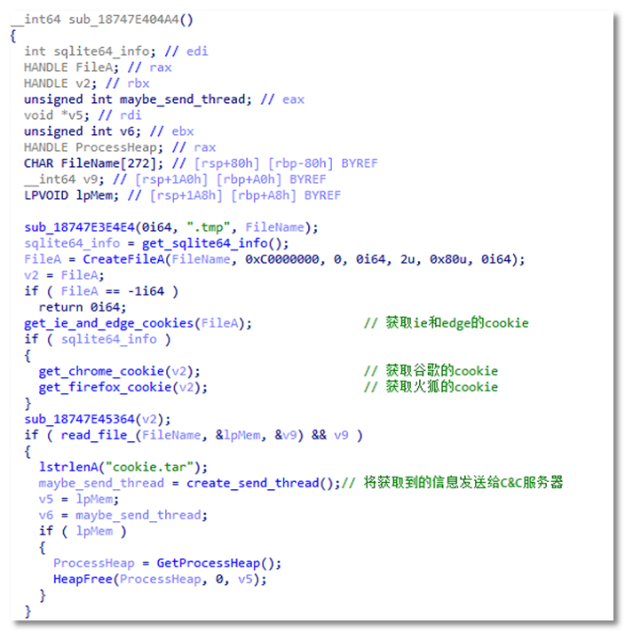 还会获取各种浏览器的Cookie数据,相关代码,如下图所示: