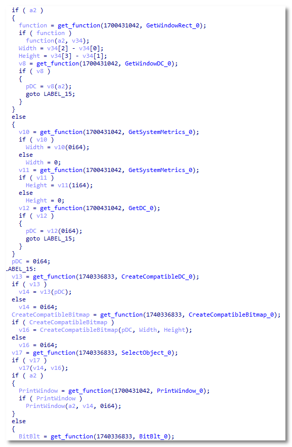 获取受害者屏幕截图功能,相关代码,如下图所示: