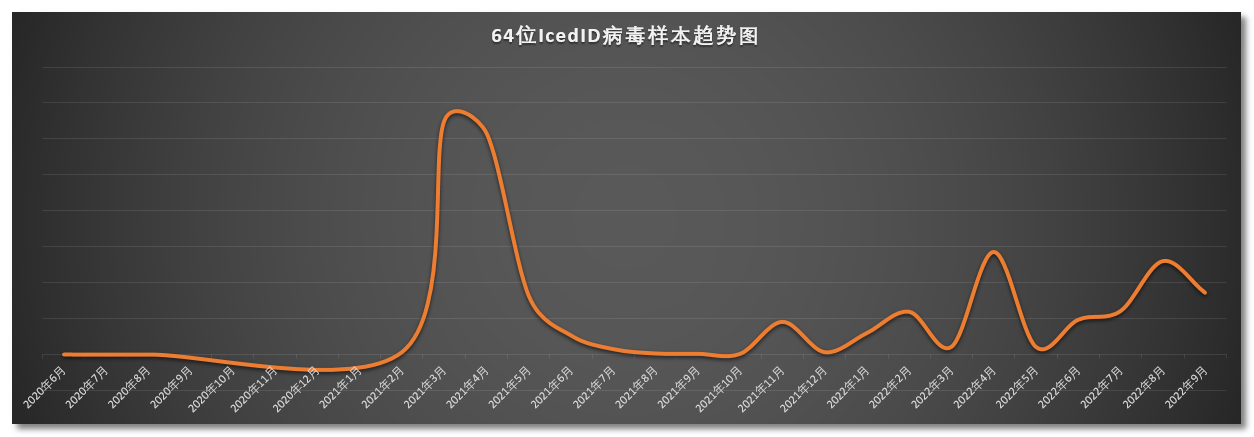 近年来较为活跃的新兴银行木马,会收集受害者各种隐私数据如:各种浏览器的登录凭证、Cookie、历史记录,电子邮件的登录凭证等信息,并携带后门功能,可以执行C&C服务器下发的任意Shell命令。从2021年1月开始64位IcedID变种大量出现,在近期又逐渐增多,64位IcedID病毒样本趋势图,如下图所示: